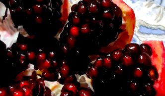The pomegranate known for It's Scarlet Grains of Health originated in second millennium BC, eaten in prehistoric times viewed as a symbol of fertility. In Christian culture pomegranate, along with a lily and a bee, is a symbol of the Virgin Mary. The crown-like form of pomegranates’ carpel made it a symbol of the monarchic power.